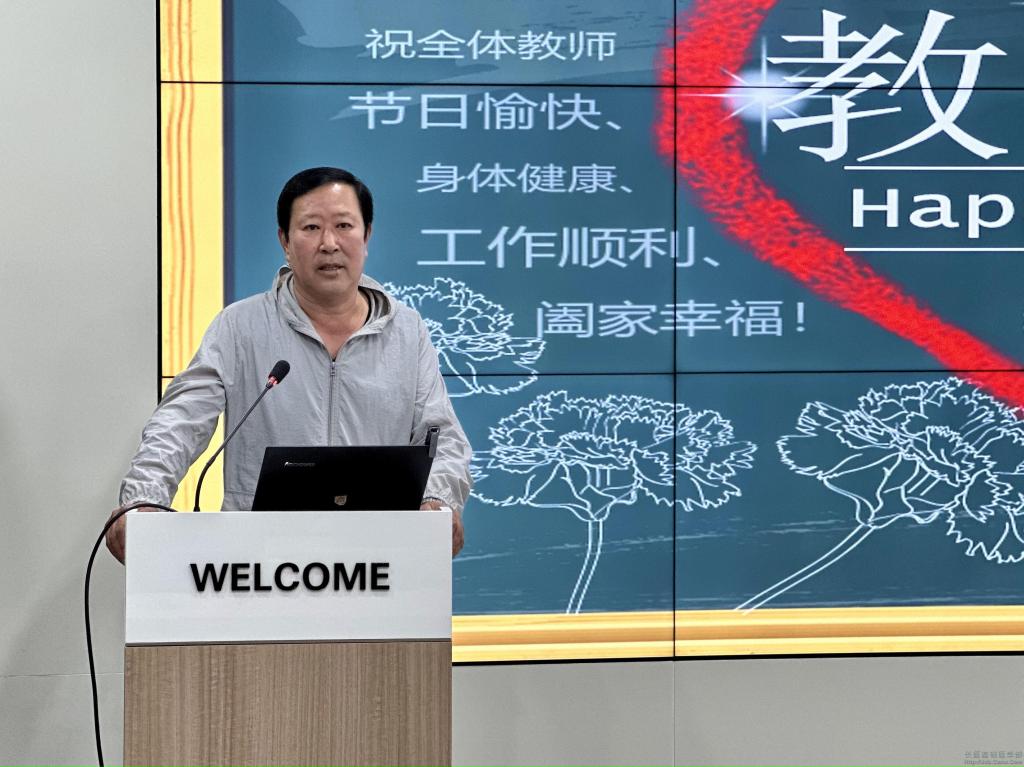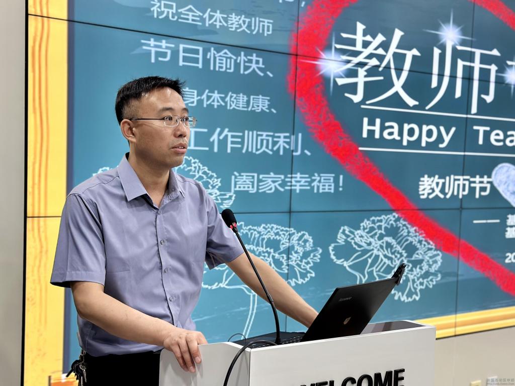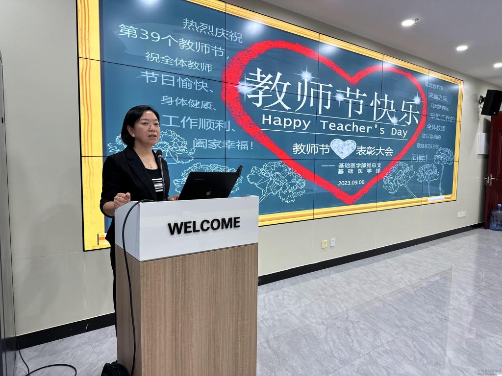 会议由基础医学部副主任原丽主持,她代表基础医学部祝每位教师节日快乐,感谢教师们在教育事业和基础医学部发展中的杰出贡献。