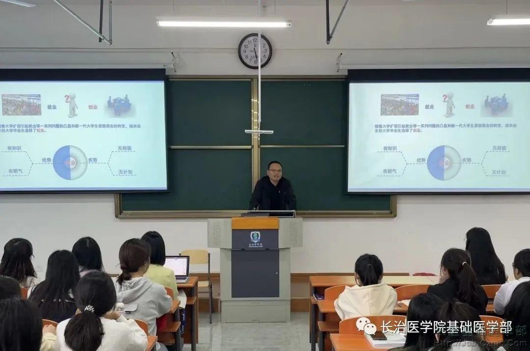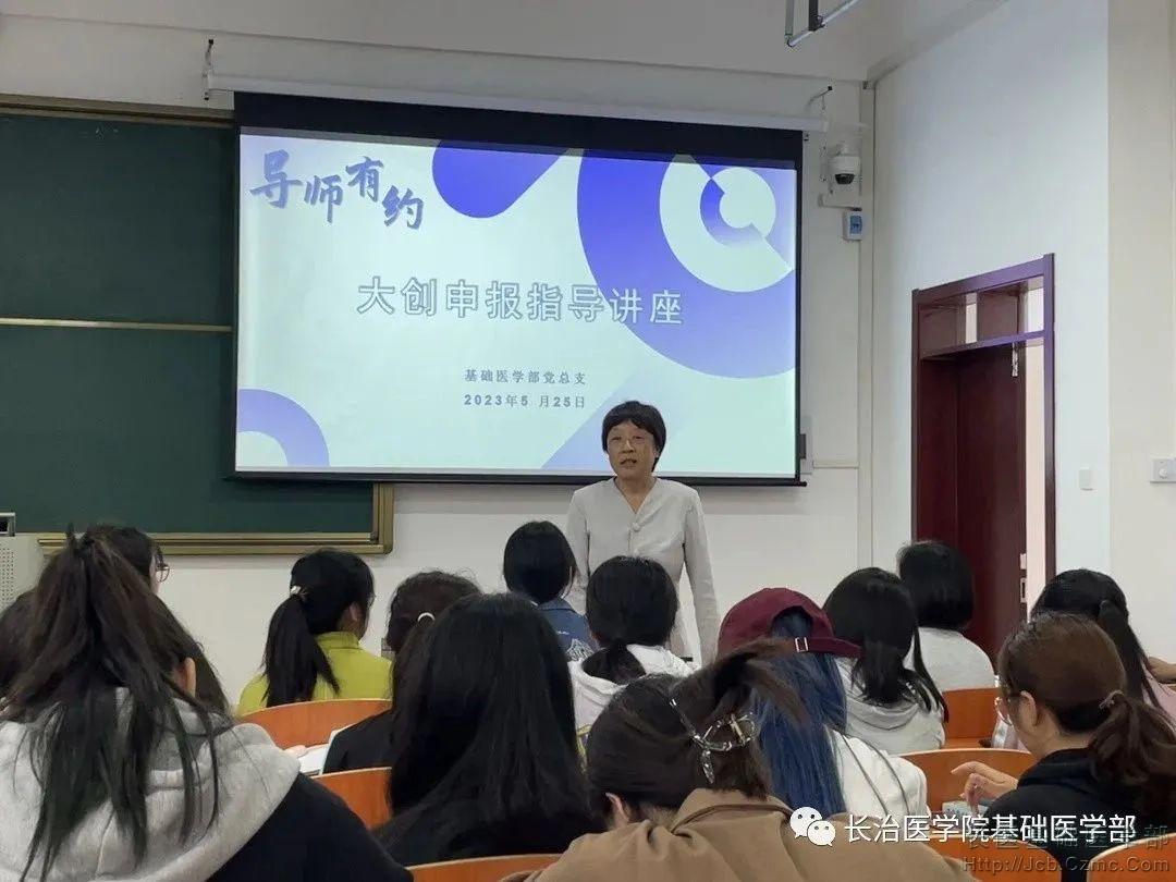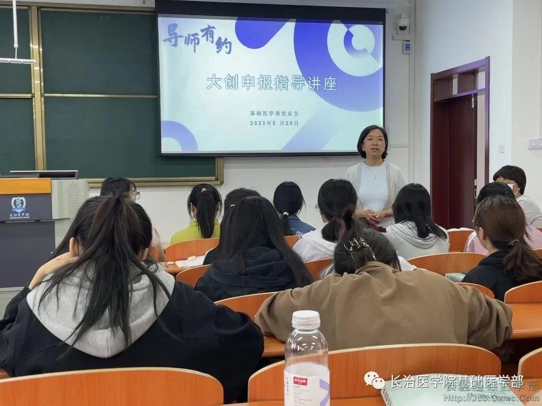 为深入学习贯彻习近平新时代中国特色社会主义思想,全面贯彻落实党的二十大精神,强化创新创业实践训练,提升老员工创新创业能力,为有意向申报大创项目的同学提供申报指导,基础医学部于5月25日在润智楼501开展“导师有约”——2023年老员工创新创业训练计划项目指导讲座。