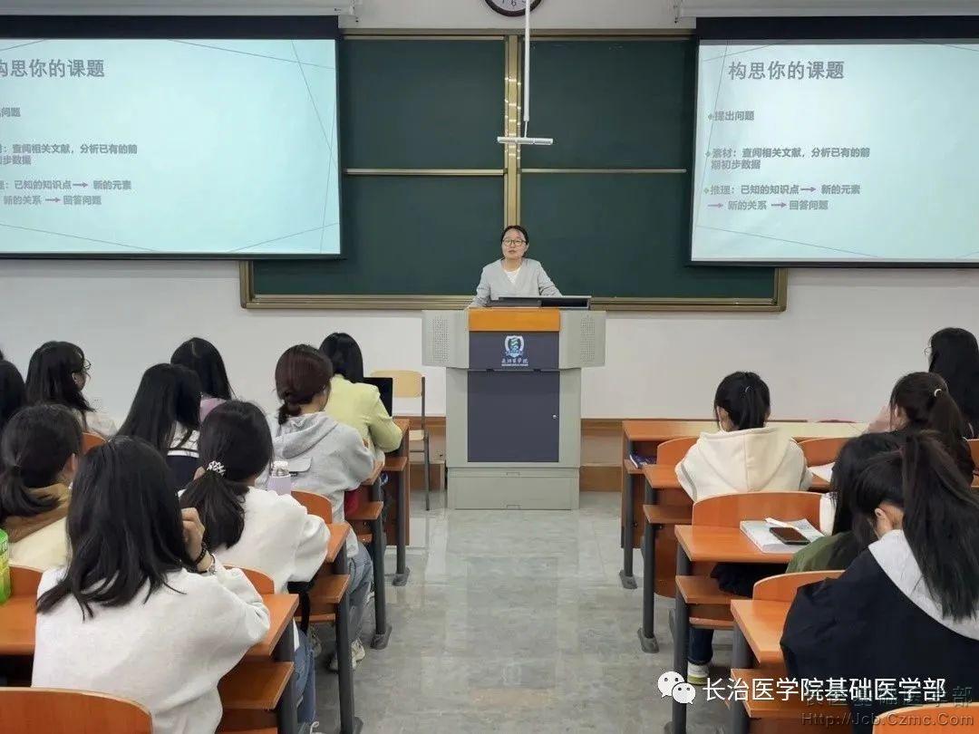 讲座特邀生理教研室陈小荣博士、基础部教研科程红兵科长进行主讲。参与本次讲座的有基础医学部党总支书记李萍,副主任张雄鹰教授和科研导师,员工党支部书记李秀萍,基础医学部辅导员、班导师以及医学实验技术员工。