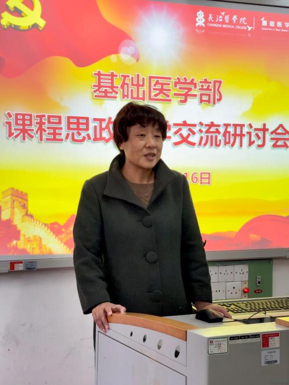 赵彩霞老师结合自己在《医用物理学》课堂教学经验,以理学医学融合的视角,浸润式、融入式的工作思路,开展思政教学活动,充分发挥专业课程思政教育优势,将“四史”学习和实践结合起来。随后,与会教师就如何开展课程思政的建设进行了讨论。