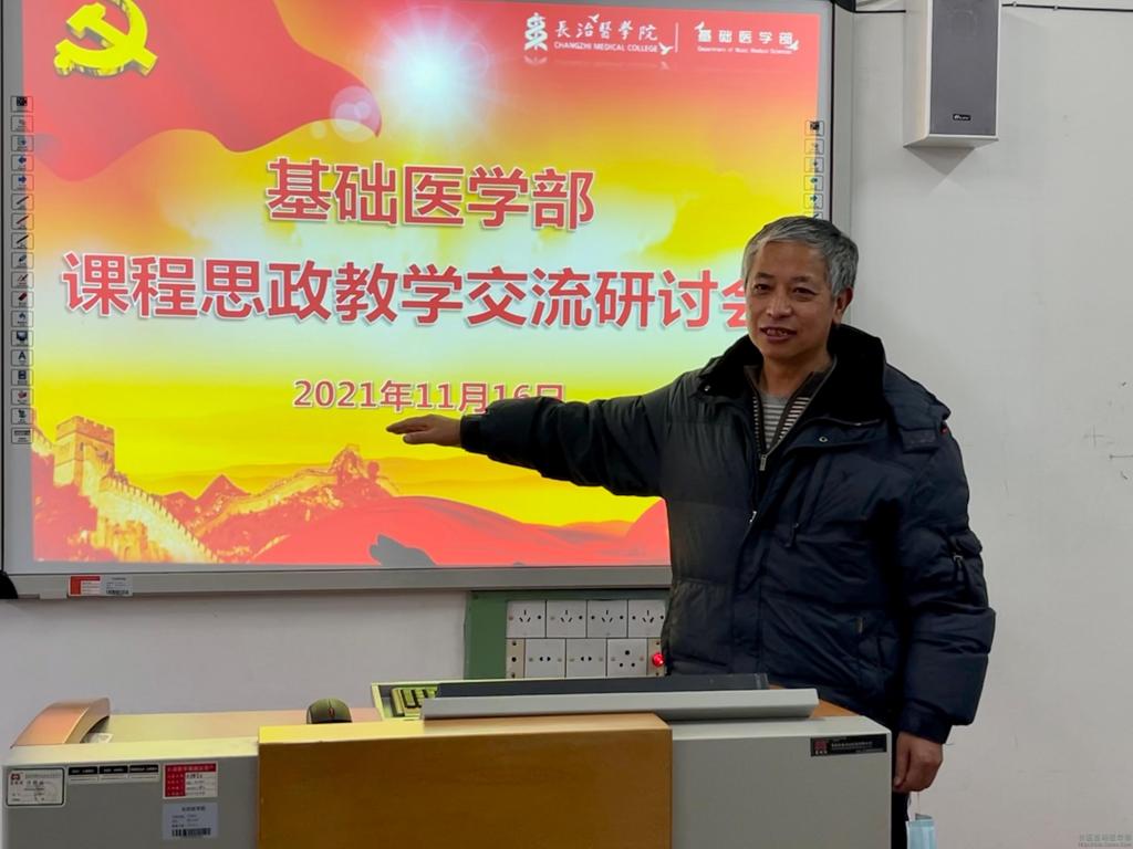 为深入贯彻习近平总书记关于教育的重要论述和全国教育大会精神、全面落实《高等学校课程思政建设指导纲要》文件精神,落实立德树人根本任务,深入推进课程思政建设,基础医学部于11月16日举办了“课程思政”教学交流研讨会。基础医学部党政领导、全体教师参加会议。会议由基础医学部副主任张雄鹰主持。