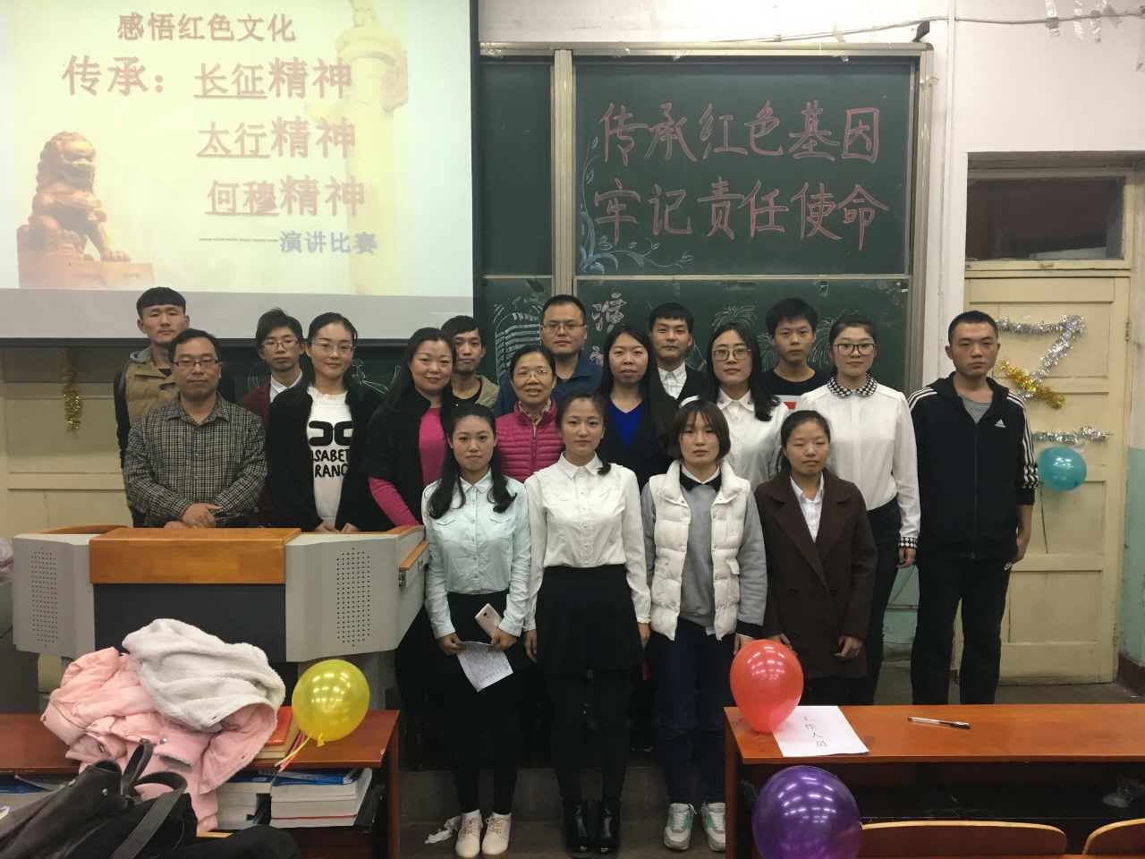 演讲中,参赛选手分别以《红色精神,不变的信仰》、《传承红色精神,奏响时代凯歌》等为题,进行了内容丰富、声情并茂的演讲。最终,赵美君荣获一等奖,刘晶、杜玉婷获得二等奖,胡鹏、盛融和郭忠忠等同学获得三等奖,李杰、黄为、卫丽、梁国彬等荣获优秀奖。