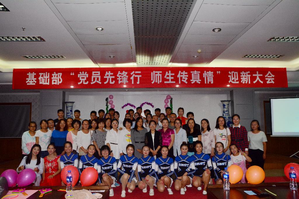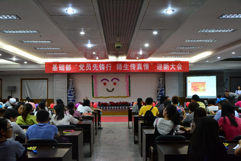 2016年9月11日晚,基础医学部“党员先锋行,师生传真情”迎新大会在科技楼17楼隆重举行。基础医学部领导梁建君、张雄鹰、冀菁荃老师及形态、公共、机能、员工四个党支部的党员教师代表、2013至2016级全体医学实验技术员工参加了本次大会。大会由2015级员工刘丰其、刘晶主持。