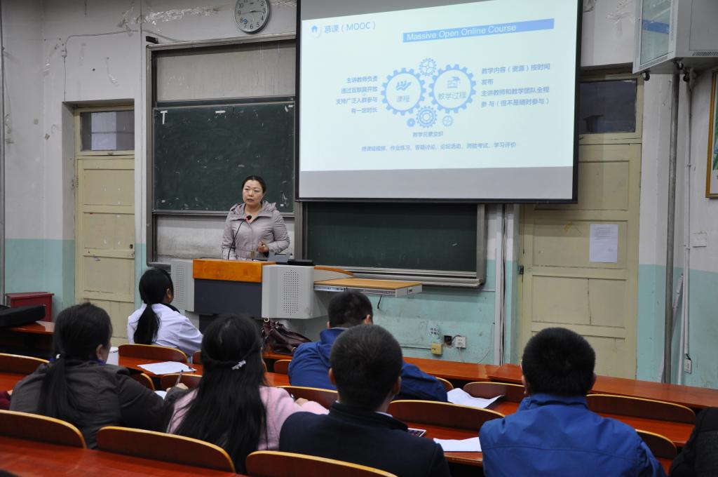 交流会上,冀菁荃副教授作了题为“MOOC、混合式教学之我见”的讲座,冀老师结合自身课程建设,分别从慕课平台的建设、课程设计、团队合作、教学应用等方面分享了经验。侯燕红副教授聚焦微课的设计、制作和应用,结合自身的教学实践经历进行经验交流,并展示了教学互动的数据,彰显以员工为中心的混合式教学的魅力。