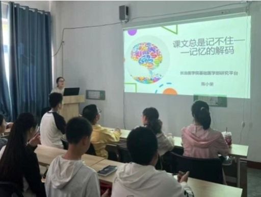 首先,基础医学部陈小荣老师用通俗易懂的语言和生动的图片开展了以《课文记不住——记忆的解码》为题的科普讲座,科学地讲解记忆的形成过程、海马体在记忆中的作用、记忆的分类以及提高记忆力的有效方法,让小朋友们对记忆有了更深入的了解。