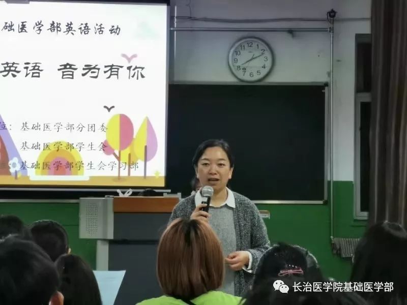 为激发并提高我系员工对英语的学习兴趣,帮助我系员工养成良好的学习习惯,丰富同学们的课余生活,同时增加同学们的沟通和交流。基础医学部于11月3日晚七点举行2019年英语系列活动第一期Charm English, sound for you “魅力英语 音为有你”。