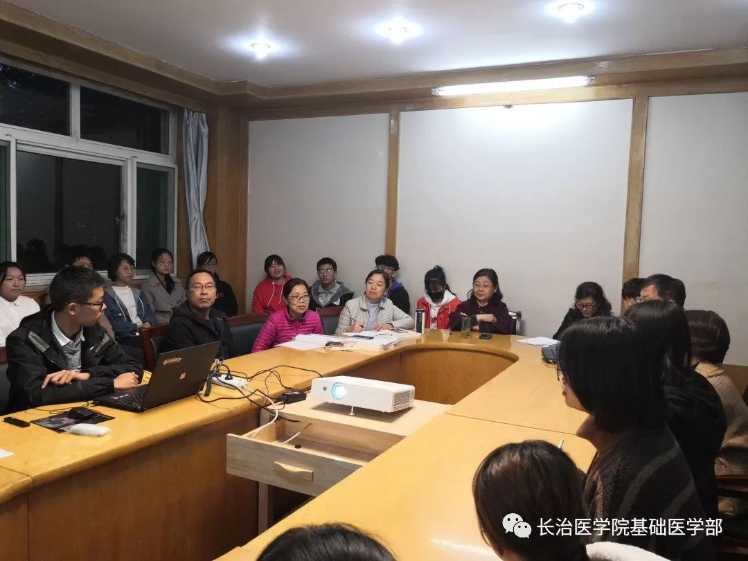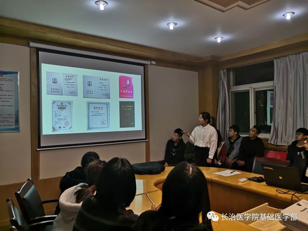 基础医学部党总支书记梁建君、基础医学部主任张翠英教授、基础医学部党总支副书记李萍、基础医学部副主任张雄鹰教授、生化教研室主任裴晋红、形态党支部书记李建斌、生理办公党支部书记李淑芬、分团委书记兼辅导员李明老师以及员工会、17级、18级员工代表担任本次评委,部分同学观摩大会。